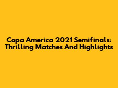 Copa America 2021 Semifinals: Thrilling Matches And Highlights