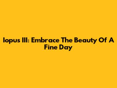 Iopus III: Embrace The Beauty Of A Fine Day