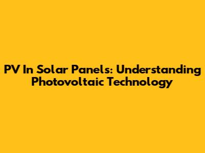PV In Solar Panels: Understanding Photovoltaic Technology