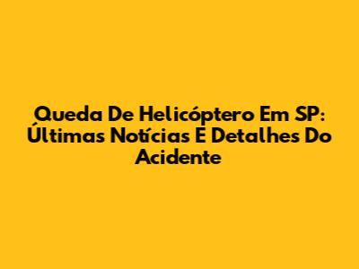 Queda De Helicóptero Em SP: Últimas Notícias E Detalhes Do Acidente