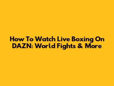 How To Watch Live Boxing On DAZN: World Fights & More