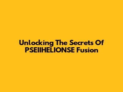 Unlocking The Secrets Of PSEIIHELIONSE Fusion