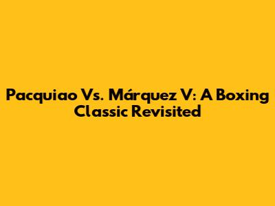 Pacquiao Vs. Márquez V: A Boxing Classic Revisited