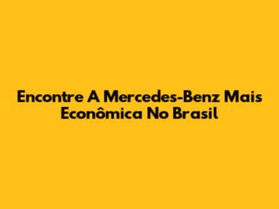 Encontre A Mercedes-Benz Mais Econômica No Brasil
