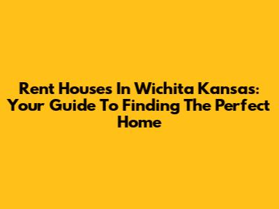 Rent Houses In Wichita Kansas: Your Guide To Finding The Perfect Home