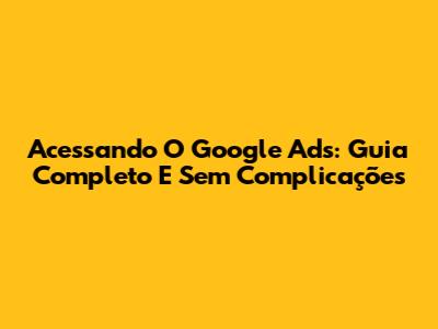 Acessando O Google Ads: Guia Completo E Sem Complicações