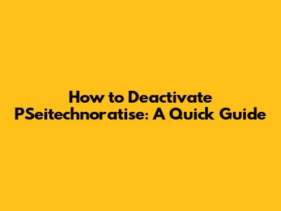 Hey guys! Ever found yourself tangled up with PSeitechnoratise and now you're itching to break free? No sweat! Deactivating it can seem a bit daunting at first, but trust me, it's totally manageable. This guide will walk you through the process, step by step, so you can reclaim your digital freedom without pulling your hair out. We'll cover everything from understanding what PSeitechnoratise actually is to the nitty-gritty of deactivation, ensuring you're well-equipped to handle it. So, let's dive in and get you back in control!