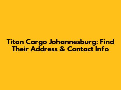 Titan Cargo Johannesburg: Find Their Address & Contact Info