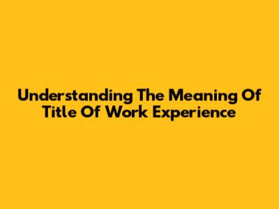Understanding The Meaning Of 'Title Of Work Experience'