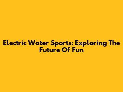 Electric Water Sports: Exploring The Future Of Fun