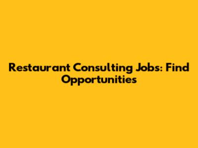 Restaurant Consulting Jobs: Find Opportunities