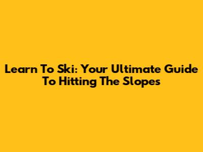 Learn To Ski: Your Ultimate Guide To Hitting The Slopes