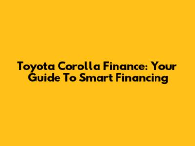 Toyota Corolla Finance: Your Guide To Smart Financing