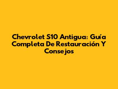 Chevrolet S10 Antigua: Guía Completa De Restauración Y Consejos