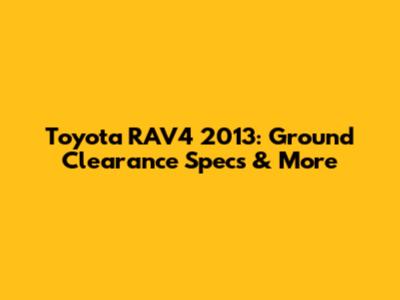 Toyota RAV4 2013: Ground Clearance Specs & More