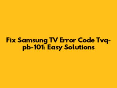 Fix Samsung TV Error Code Tvq-pb-101: Easy Solutions