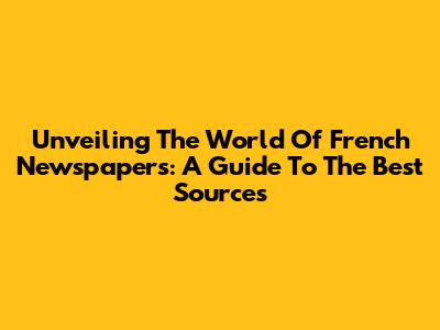 Unveiling The World Of French Newspapers: A Guide To The Best Sources
