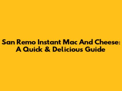 San Remo Instant Mac And Cheese: A Quick & Delicious Guide