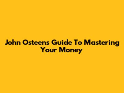 John Osteen's Guide To Mastering Your Money