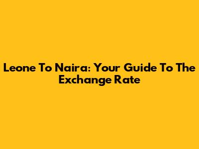 Leone To Naira: Your Guide To The Exchange Rate