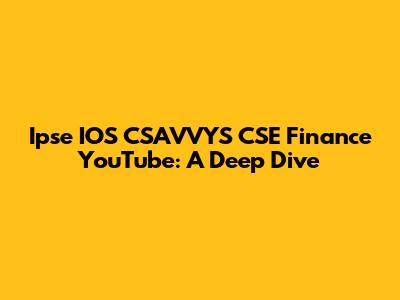 Ipse IOS CSAVVYS CSE Finance YouTube: A Deep Dive