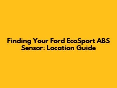 Finding Your Ford EcoSport ABS Sensor: Location Guide