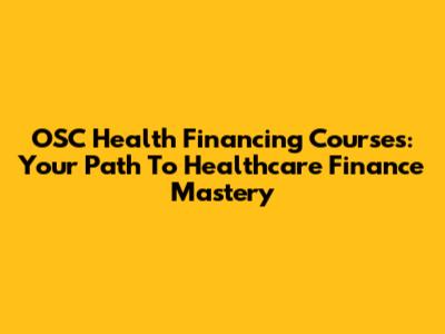 OSC Health Financing Courses: Your Path To Healthcare Finance Mastery
