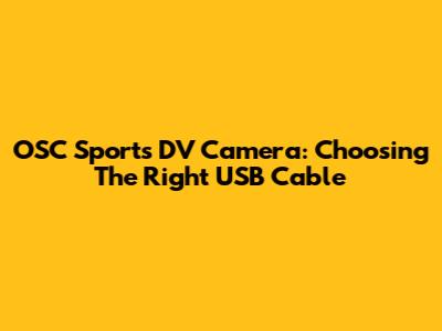 OSC Sports DV Camera: Choosing The Right USB Cable