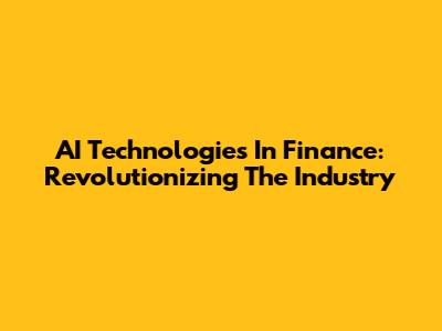 AI Technologies In Finance: Revolutionizing The Industry
